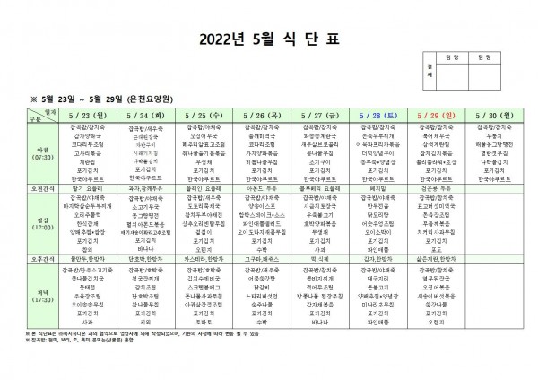 5월 넷째주 식단표 페이지 정보 작성자 은천노인복지회 작성일22-05-19 16:56 조회102,461회 댓글0건 관련링크 이전글 다음글 목록 답변 본문 . 이전글 다음글 목록 답변