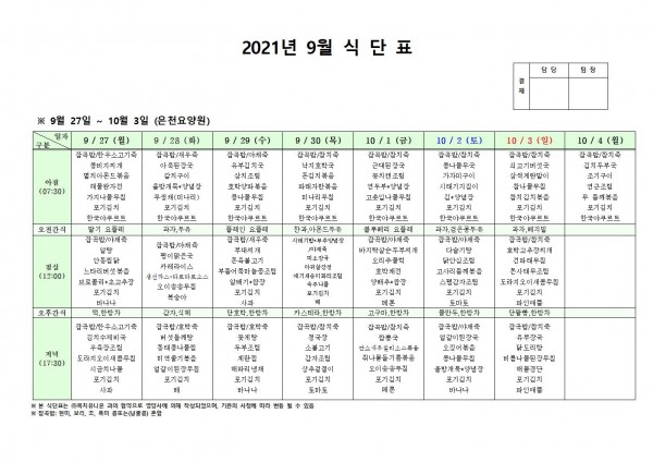 9월 넷째주 식단표 페이지 정보 작성자 은천노인복지회 작성일21-09-30 16:00 조회124,408회 댓글0건 관련링크 이전글 다음글 목록 답변 본문 . 이전글 다음글 목록 답변