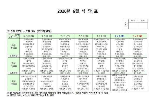 7월 첫째주 식단표 페이지 정보 작성자 은천노인복지회 작성일20-07-08 11:02 조회165,871회 댓글0건 관련링크 이전글 다음글 목록 답변 본문 . 이전글 다음글 목록 답변