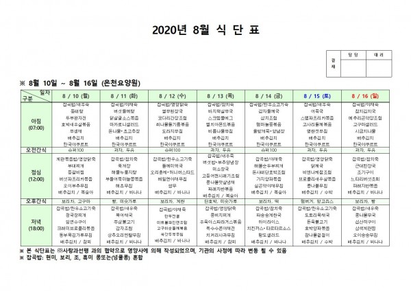 8월 둘째주 식단표 페이지 정보 작성자 은천노인복지회 작성일20-08-25 16:00 조회160,815회 댓글0건 관련링크 이전글 다음글 목록 답변 본문 , 이전글 다음글 목록 답변
