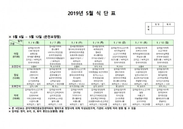 5월 첫째주 식단표 페이지 정보 작성자 은천노인복지회 작성일19-05-13 13:11 조회200,221회 댓글0건 관련링크 이전글 다음글 목록 답변 본문 5월 첫째주 식단표 이전글 다음글 목록 답변