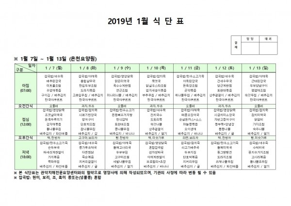 1월 첫째주 식단표 페이지 정보 작성자 은천노인복지회 작성일19-01-22 13:31 조회205,421회 댓글2건 관련링크 이전글 다음글 목록 답변 본문 1월 첫째주 식단표 이전글 다음글 목록 답변
