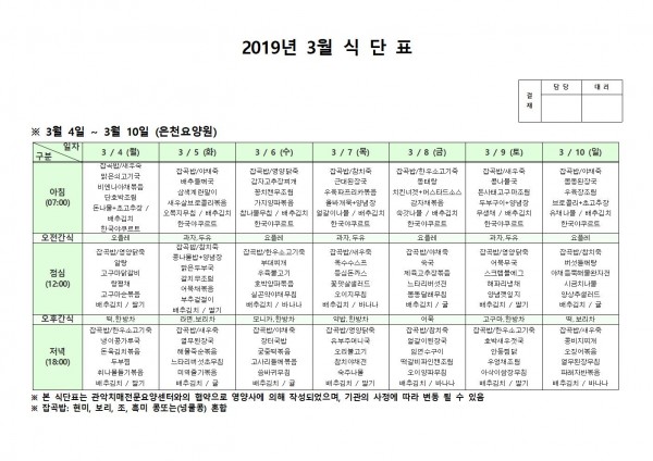 3월 첫째주 식단표 페이지 정보 작성자 은천노인복지회 작성일19-03-13 09:44 조회202,749회 댓글0건 관련링크 이전글 다음글 목록 답변 본문 3월 첫째주 식단표 이전글 다음글 목록 답변