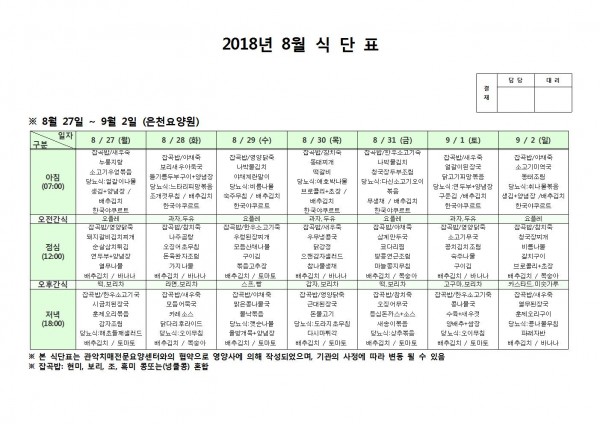 8월 다섯째주 식단표 페이지 정보 작성자 은천노인복지회 작성일18-09-11 09:27 조회204,201회 댓글0건 관련링크 이전글 다음글 목록 답변 본문 8월 다섯째주 기단표 이전글 다음글 목록 답변