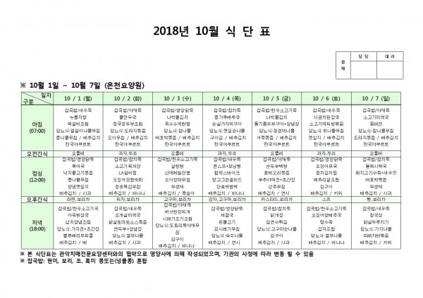 10월 첫째주 식단표 페이지 정보 작성자 은천노인복지회 작성일18-10-08 11:06 조회201,850회 댓글0건 관련링크 이전글 다음글 목록 답변 본문 10월 첫째주 식단표 이전글 다음글 목록 답변