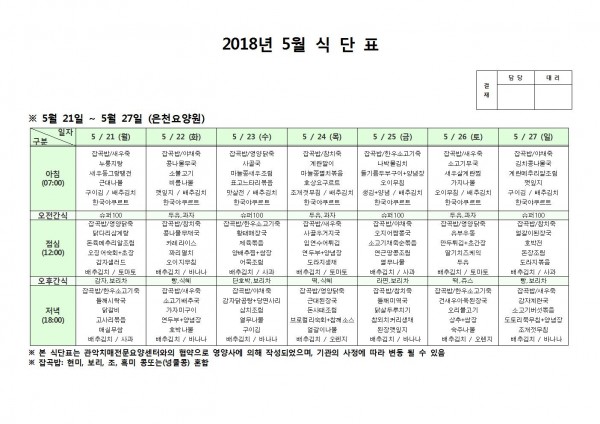 5월 넷째주 식단표 페이지 정보 작성자 은천노인복지회 작성일18-06-07 10:39 조회205,202회 댓글0건 관련링크 이전글 다음글 목록 답변 본문 5월 넷째주 식단표 이전글 다음글 목록 답변