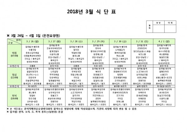 3월 다섯째주 식단표 페이지 정보 작성자 은천노인복지회 작성일18-03-26 13:51 조회196,865회 댓글0건 관련링크 이전글 다음글 목록 답변 본문 3월 다섯째주 식단표 이전글 다음글 목록 답변