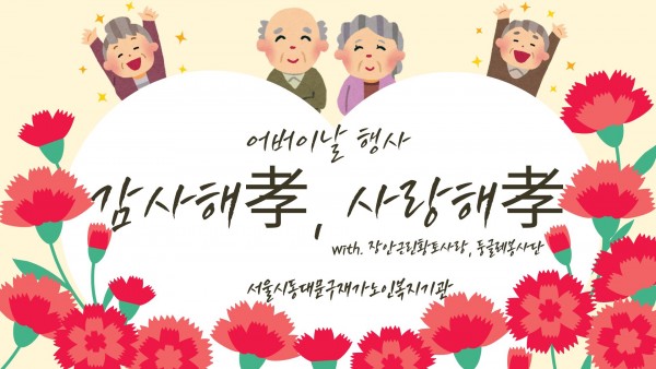 [서울시동대문구재가노인복지기관] 어버이날 기념 '감사해孝, 사랑해孝' 페이지 정보 작성자 은천노인복지회 작성일25-05-14 15:07 조회3,177회 댓글0건 관련링크 이전글 다음글 목록 답변 본문 2025년 5월 어버이날 기념으로 선물과 간식을 전달해드리며 행사를 진행하였습니다. 이전글 다음글 목록 답변