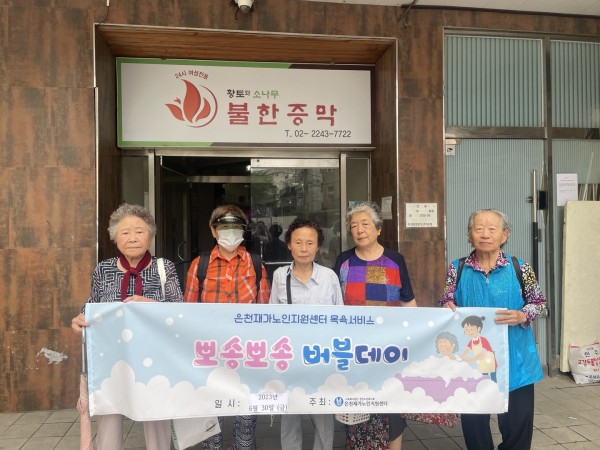 [재가노인서비스] 목욕지원사업 '뽀송뽀송 버블데이' 페이지 정보 작성자 은천노인복지회 작성일23-07-12 16:12 조회10,026회 댓글0건 관련링크 이전글 다음글 목록 답변 본문 장안동에 위치한 목욕탕에서 어르신들을 모시고 목욕서비스를 지원하였습니다. 이전글 다음글 목록 답변
