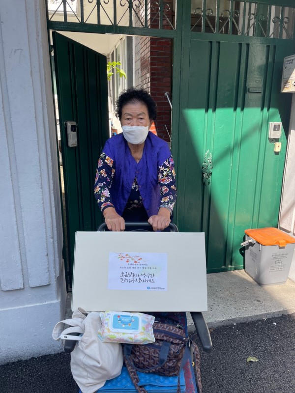 이번 추석 선물을 우리은행에서 지원받아 동대문구 저소득층 어르신들에게 지원해 드렸습니다.