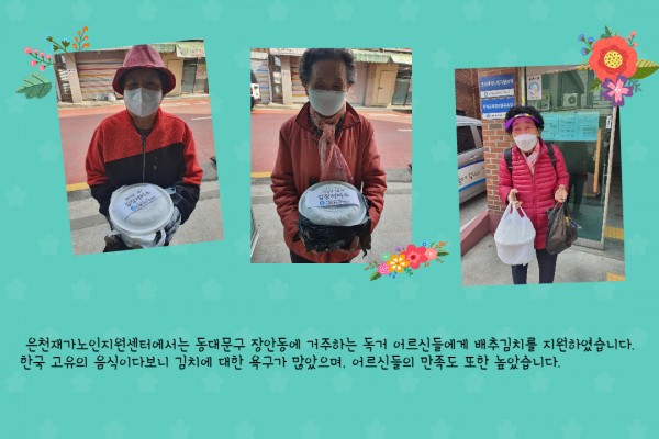 [재가노인지원서비스] 1분기 김장서비스 페이지 정보 작성자 은천노인복지회 작성일22-03-30 14:01 조회18,297회 댓글0건 관련링크 이전글 다음글 목록 답변 본문 1분기 김장서비스 이전글 다음글 목록 답변