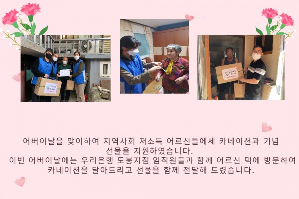 [재가노인지원] 어버이날 기념 '어르신, 사랑해 孝!' 페이지 정보 작성자 은천노인복지회 작성일22-06-03 17:17 조회17,805회 댓글0건 관련링크 이전글 다음글 목록 답변 본문 2022년 어버이날 기념 행사 이전글 다음글 목록 답변