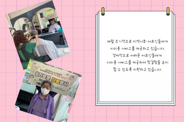 [재가노인지원서비스] 이미용 서비스 페이지 정보 작성자 은천노인복지회 작성일22-07-06 13:27 조회17,467회 댓글0건 관련링크 이전글 다음글 목록 답변 본문 6월 이미용 서비스 이전글 다음글 목록 답변