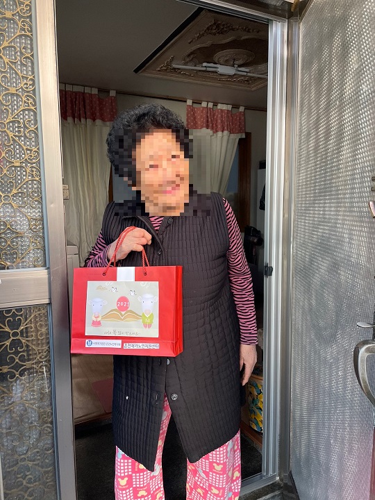 [재가노인지원센터] 설명절 선물지원서비스 페이지 정보 작성자 은천노인복지회 작성일21-02-26 09:42 조회24,462회 댓글0건 관련링크 이전글 다음글 목록 답변 본문 2021년 설 멸정을 맞이하여 어르신들을 찾아뵙고 선물을 전하면서 안부확인을 진행하였습니다. 이전글 다음글 목록 답변