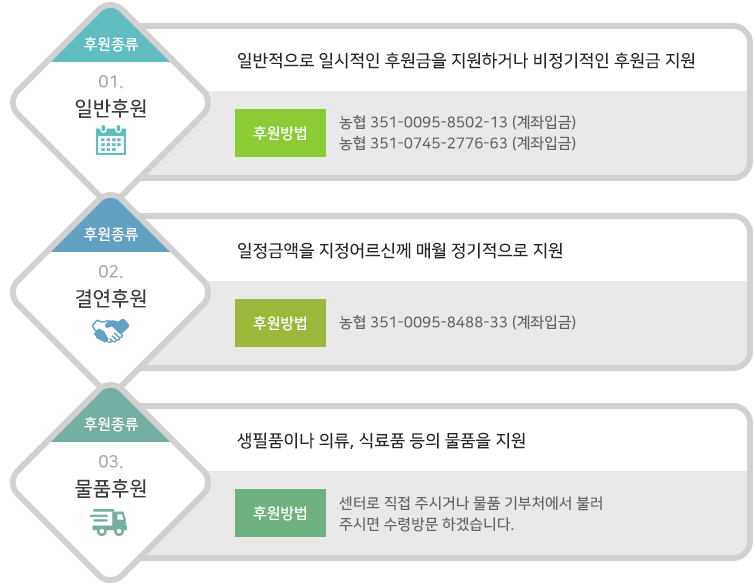 • ‘모든 후원금은 어르신들의 생활비 및 사업비로 사용되며, 매월 사용내역은 홈페이지에 게시합니다’
